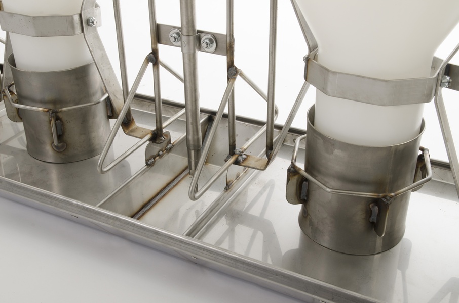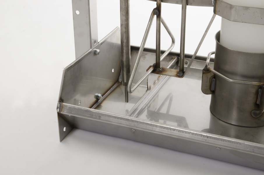 Fütterungs- und Tränkebereiche sind durch Trennwände und Gitterstäbe aus Edelstahl getrennt